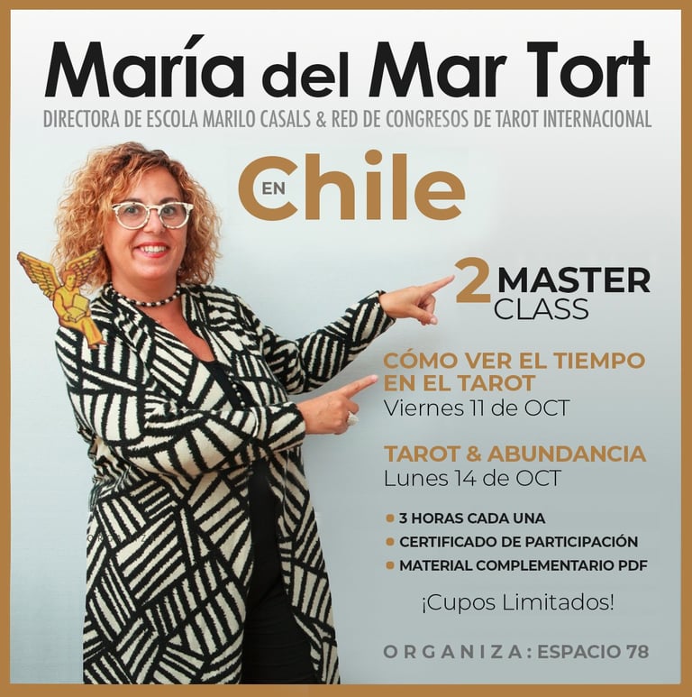 Te invitamos a celebrar el poder del tarot asistiendo al Congreso de Tarot de Chile. En el marco de este evento organizaremos además 3 exclusivas Masterclass presenciales con reconocidas tarotistas de fama mundial María del Mar Tort y Noelia Pace. No pierdas la oportunidad de aprender con las mejores y sumergirte en el fascinante mundo del tarot.